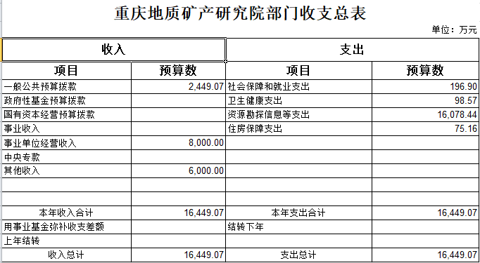 重庆地质矿产研究院2019年部门预算情况说明